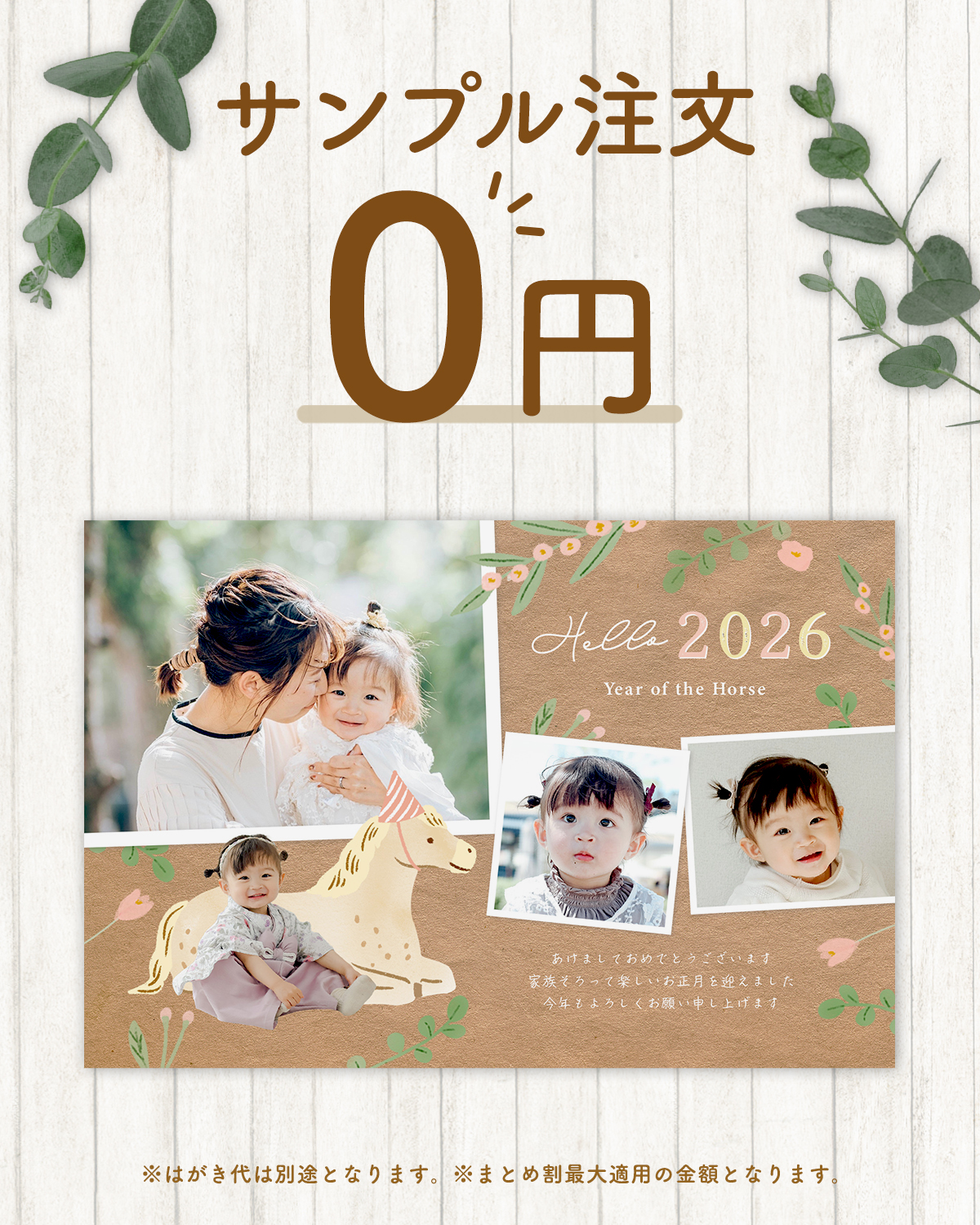 スマホで年賀状は、印刷するハガキを「年賀はがき」「ディズニー 年賀」から選べる人気の年賀状アプリなのら♪ 大量に注文する前に、サンプル注文で実際の仕上がりを確認できるから便利のら〜♪