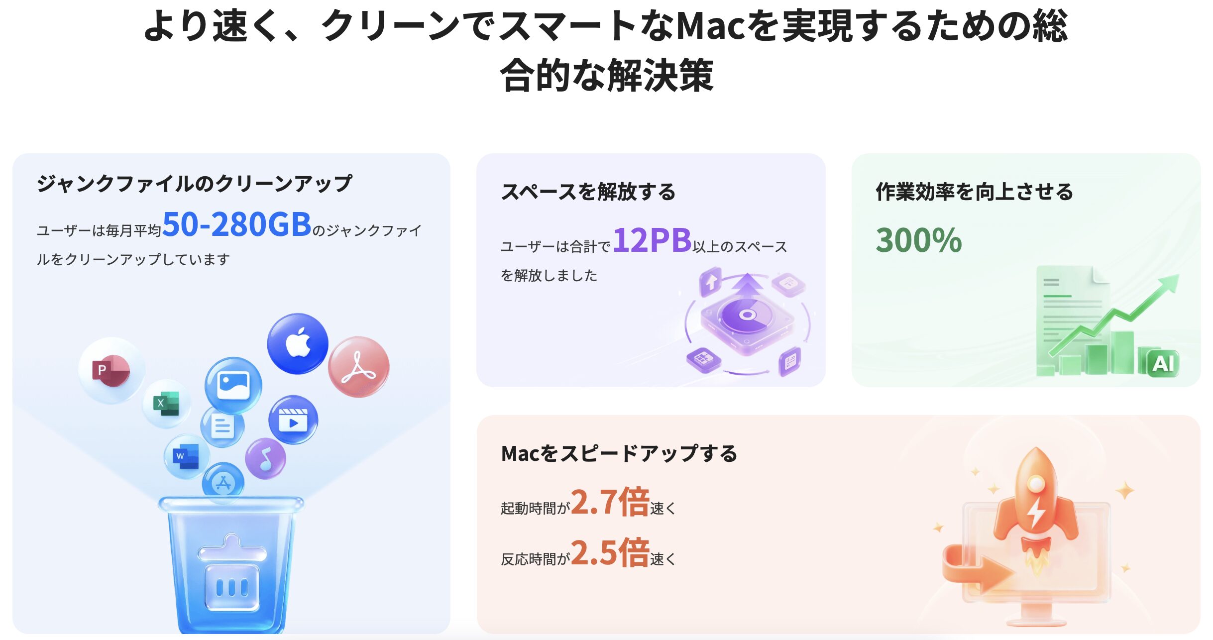 これにより、Macのストレージが解放されるだけでなく、ストレスのない快適な動作を実現できるのです。
