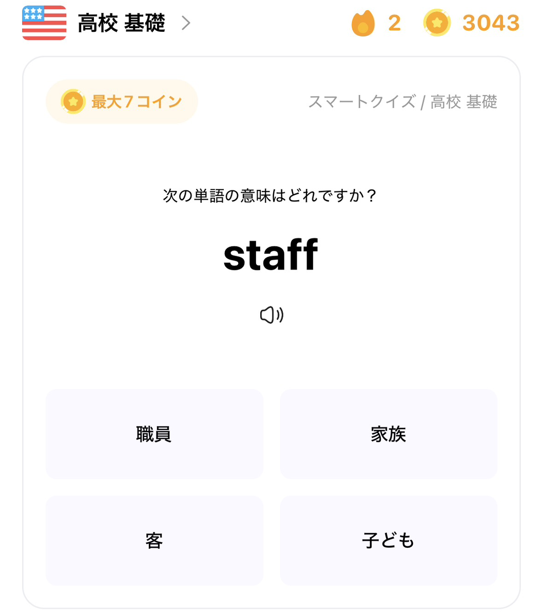 ○三日坊主にならないための機能が盛り沢山!自分が苦手な英単語を中心とした問題がアプリ起動時に出題される機能、好きな分野の英語ニュースを探して英語長文を片手で読める機能、自分の発音が正しいか点数をつけてくれる発音スコア機能、英語文法を楽しく学べるクイズ機能など、飽き性な人でも続けられる仕組みが施されているぞ!
